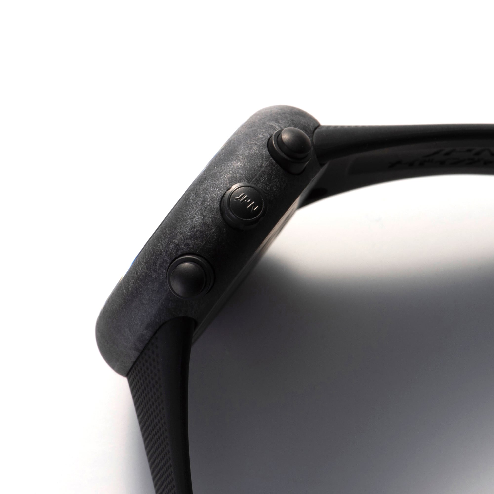 The exterior materials used for the JPN are carbon, titanium and polycarbonate, the same materials actually used in the best racing cars. The heart of the watch is a solar-powered quartz movement, which is highly accurate, requires no regular battery replacement and is environmentally friendly.